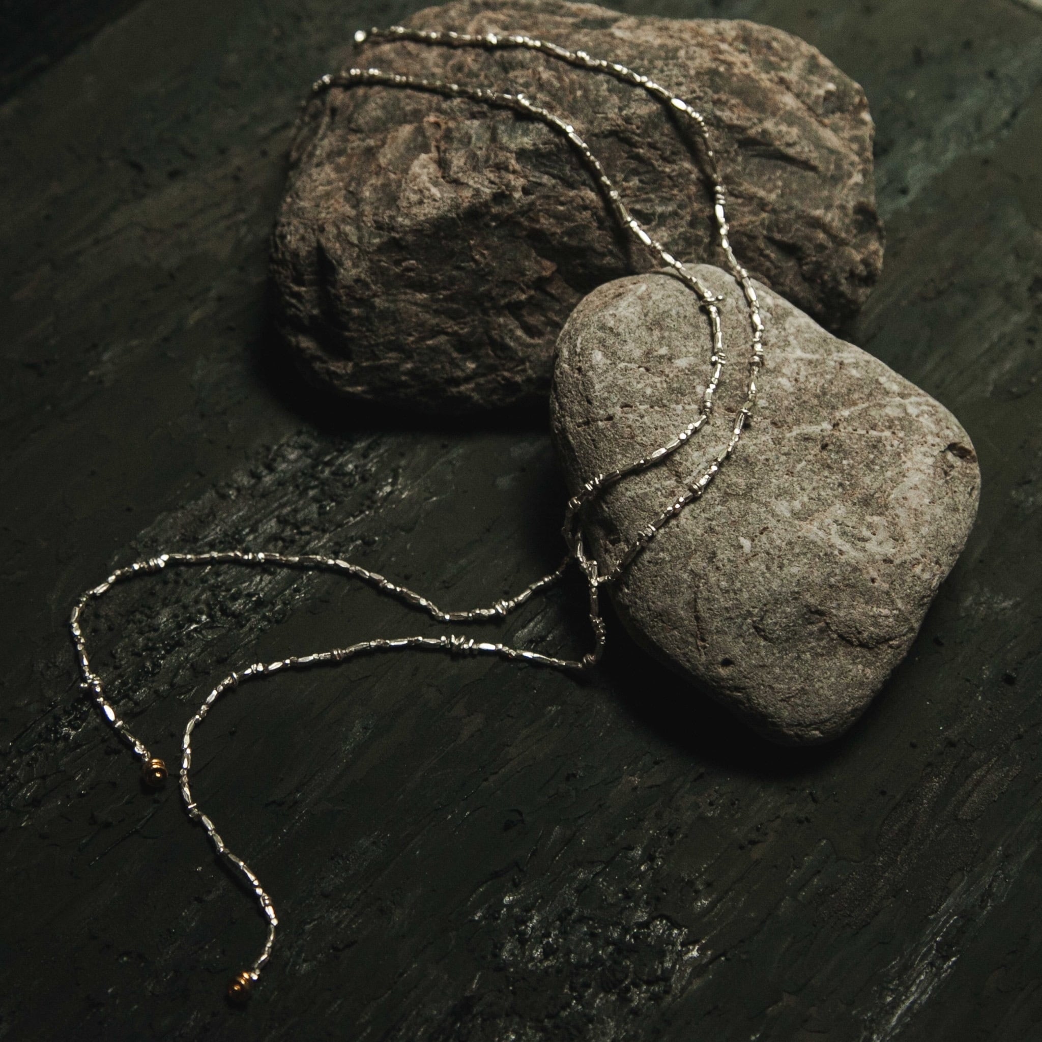 ランダムなカタチのカレンシルバーをふんだんに使ったロングタイプです。